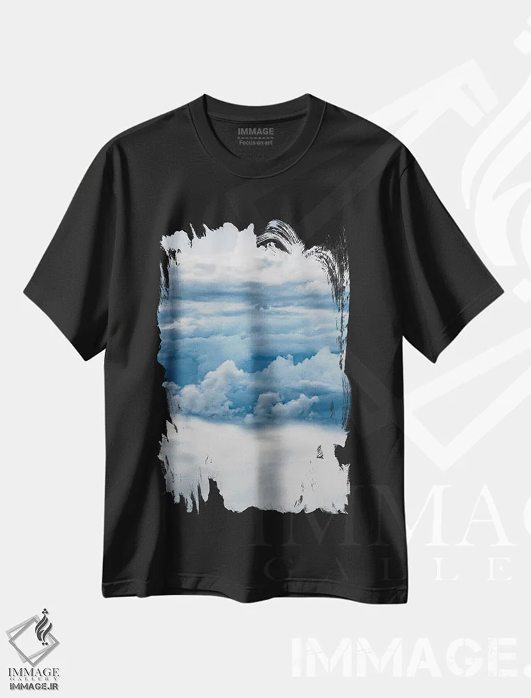 تیشرت مشکی طرح دار چرخش ابر، تزئینی اثر هانا پریویت | فروشگاه ایماژ
