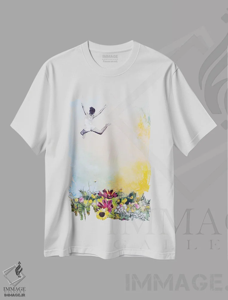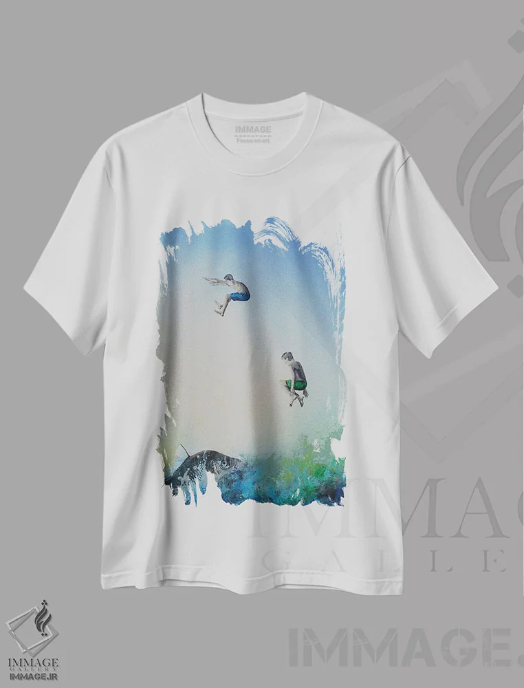 تیشرت سفید طرح دار پرش به داخل، دکور معاصر اثر هانک پره بوم | فروشگاه ایماژ