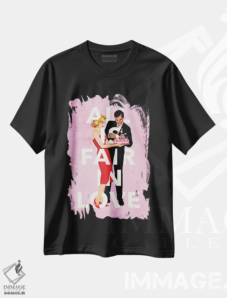 تیشرت مشکی طرح دار در عشق همه چیز مجاز است، تزئینی اثر هدر لندیس | فروشگاه ایماژ