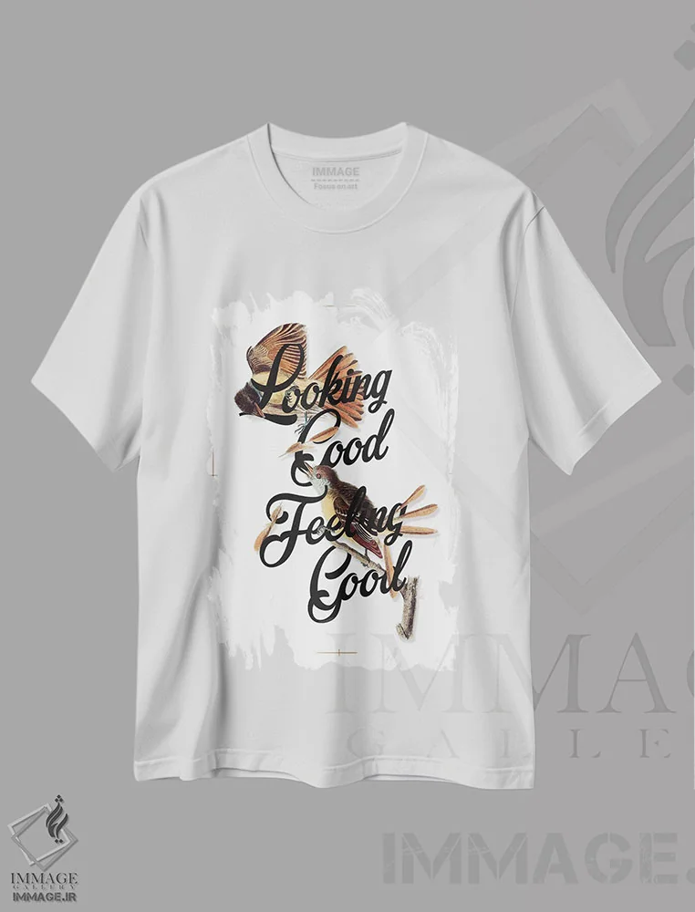 تیشرت سفید طرح دار ظاهر و احساس خوب، تزئینی اثر هدر لندیس | فروشگاه ایماژ
