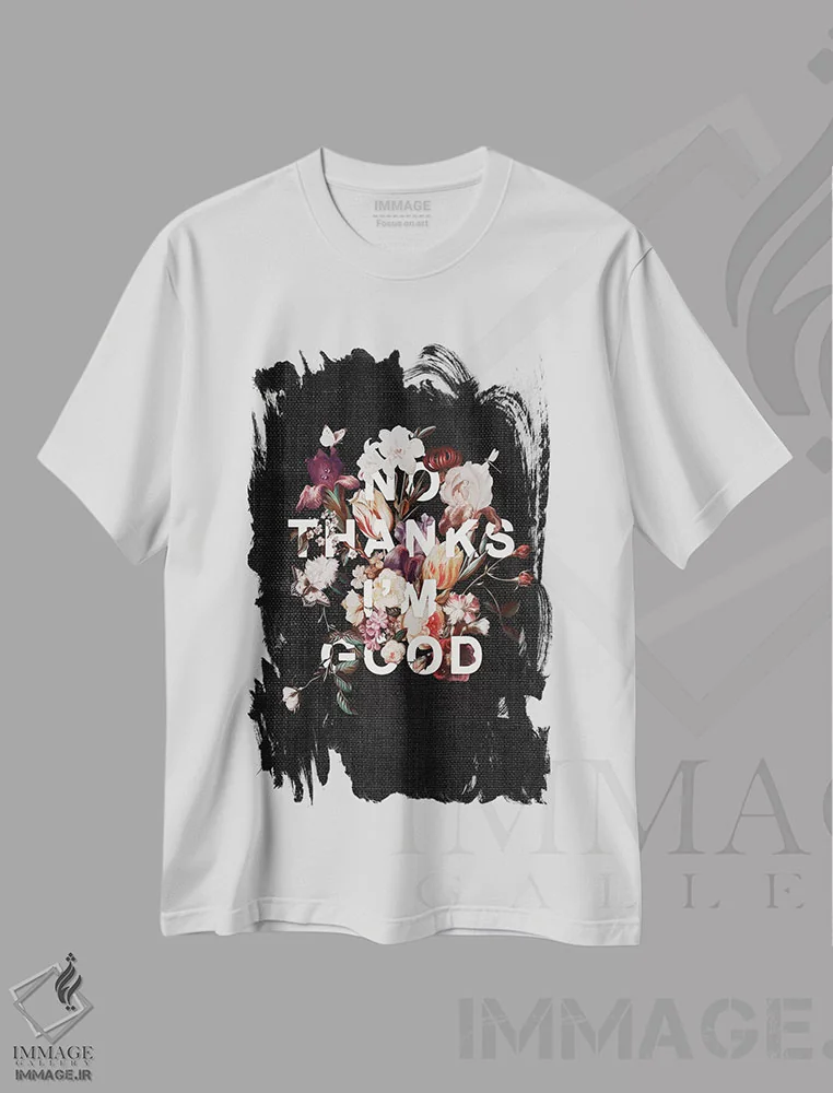 تیشرت سفید طرح دار نه مرسی، خوبم، تزئینی اثر هدر لندیس | فروشگاه ایماژ