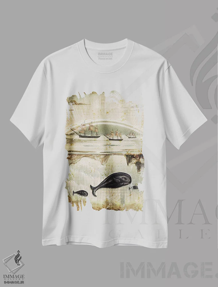 تیشرت سفید طرح دار نهنگ کاغذی، دکوراسیون جایگزین اثر هدر لندیس | فروشگاه ایماژ