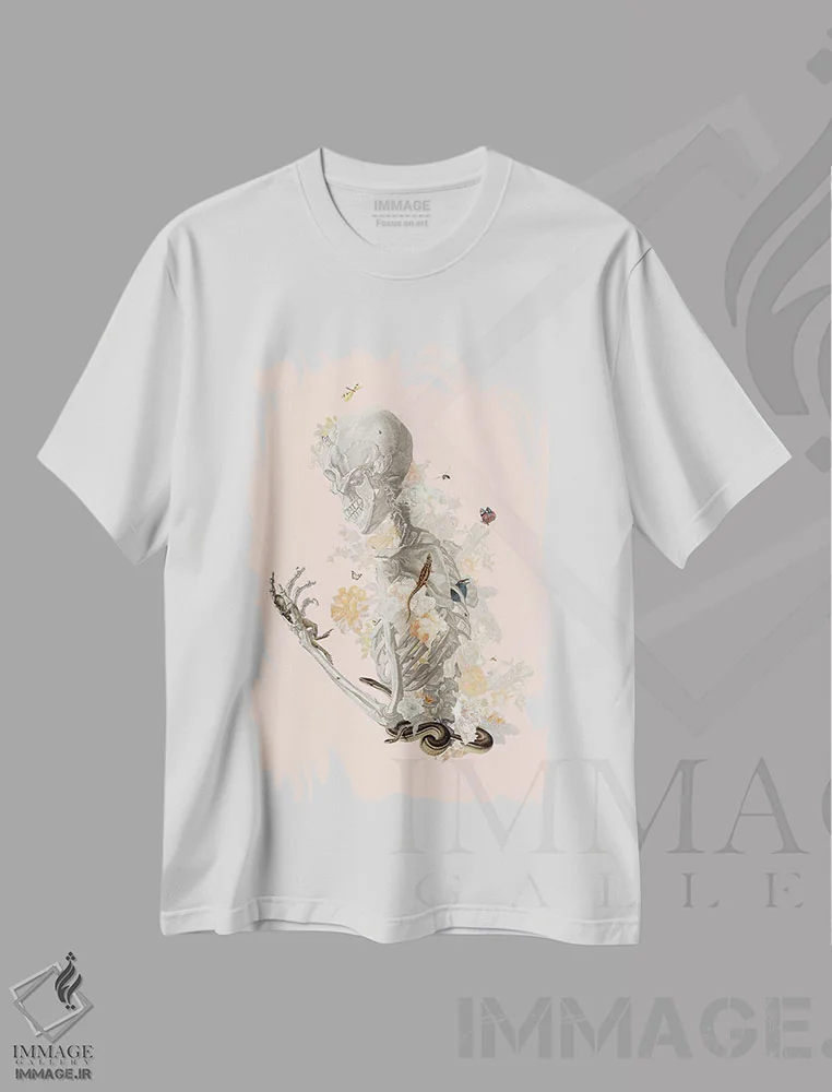 تیشرت سفید طرح دار ضرب سوم، دکوراسیون جایگزین اثر هدر لندیس | فروشگاه ایماژ