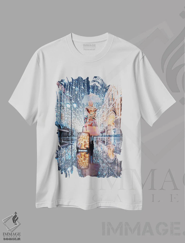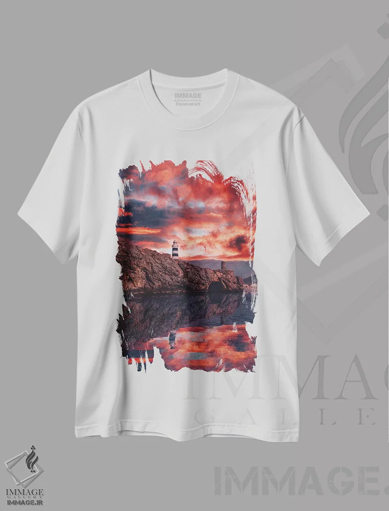 تیشرت سفید طرح دار – تیشرت هنری ,"صبح سرخ در ونیز" اثر هوبوپیبا فروشگاه ایماژ تیشرت طرح هنری ,"صبح سرخ در ونیز" اثر هوبوپیبا