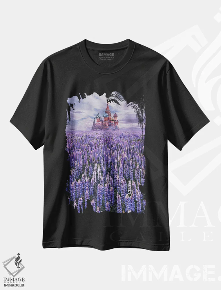 تیشرت مشکی طرح دار – تیشرت طبیعت ,"مزرعه لوبین در میدان سرخ" اثر هوبوپیبا فروشگاه ایماژ تیشرت طرح طبیعت ,"مزرعه لوبین در میدان سرخ" اثر هوبوپیبا