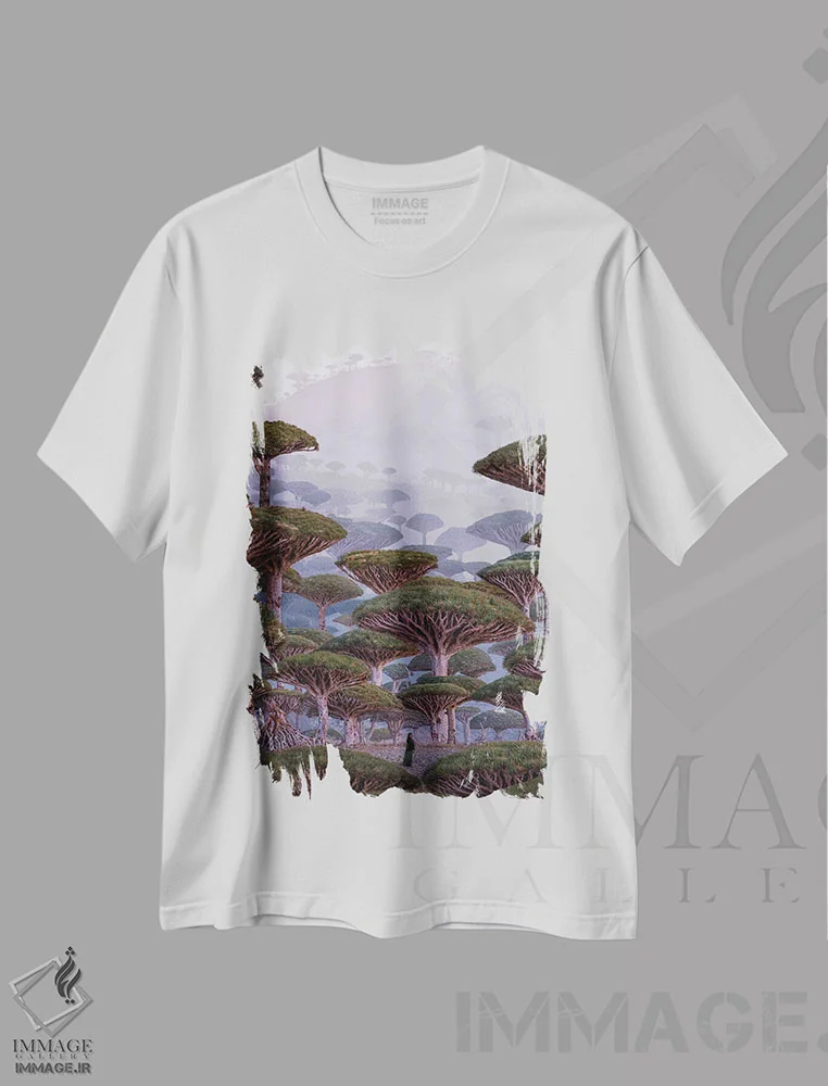 تیشرت سفید طرح دار – تیشرت طبیعت ,"فصل شکوفه دادن در سقطرا" اثر هوبوپیبا فروشگاه ایماژ تیشرت طرح طبیعت ,"فصل شکوفه دادن در سقطرا" اثر هوبوپیبا