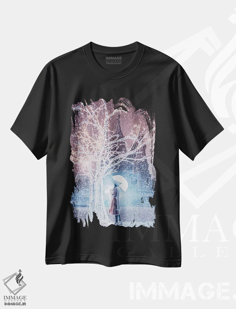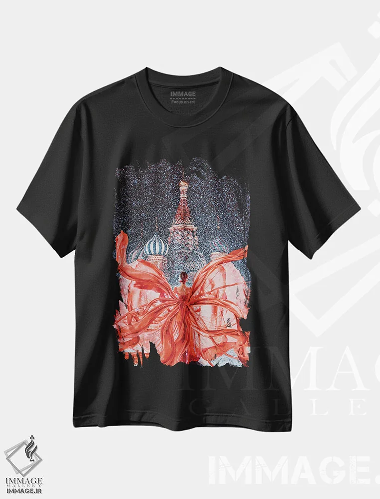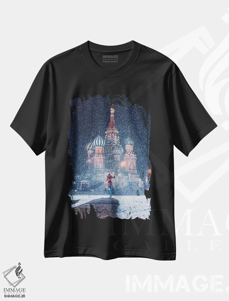 تیشرت مشکی طرح دار – تیشرت هنری ,"بارش برف جادویی در مسکو" اثر هوبوپیبا فروشگاه ایماژ تیشرت طرح هنری ,"بارش برف جادویی در مسکو" اثر هوبوپیبا