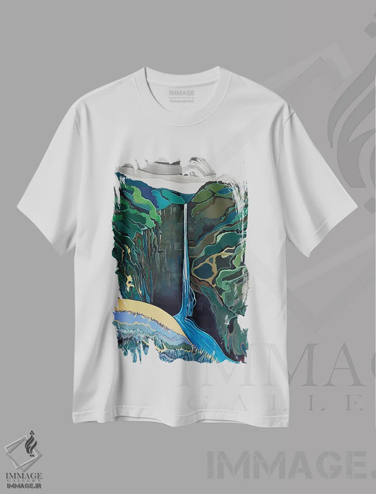 تیشرت سفید طرح دار آبشار آکاکا، مدیوم اثر هیدن هیل | فروشگاه ایماژ تیشرت طرح دار آبشار آکاکا اثر هیدن هیل