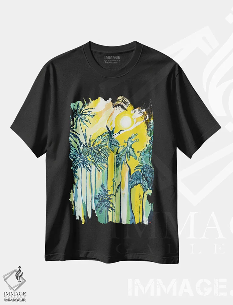 تیشرت مشکی طرح دار نخل ها زیر آفتاب، مدیوم اثر هیدن هیل | فروشگاه ایماژ تیشرت طرح دار نخل ها زیر آفتاب اثر هیدن هیل