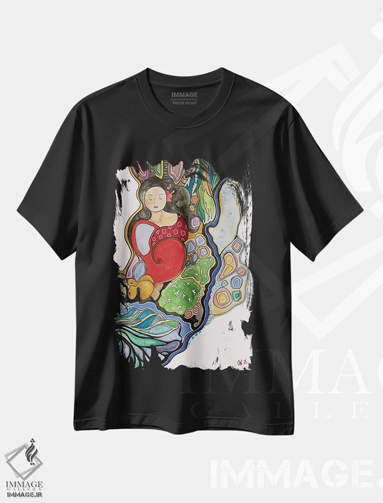 تیشرت مشکی طرح دار زن کنار دریا، مدیوم اثر هیدن هیل | فروشگاه ایماژ تیشرت طرح دار زن کنار دریا اثر هیدن هیل