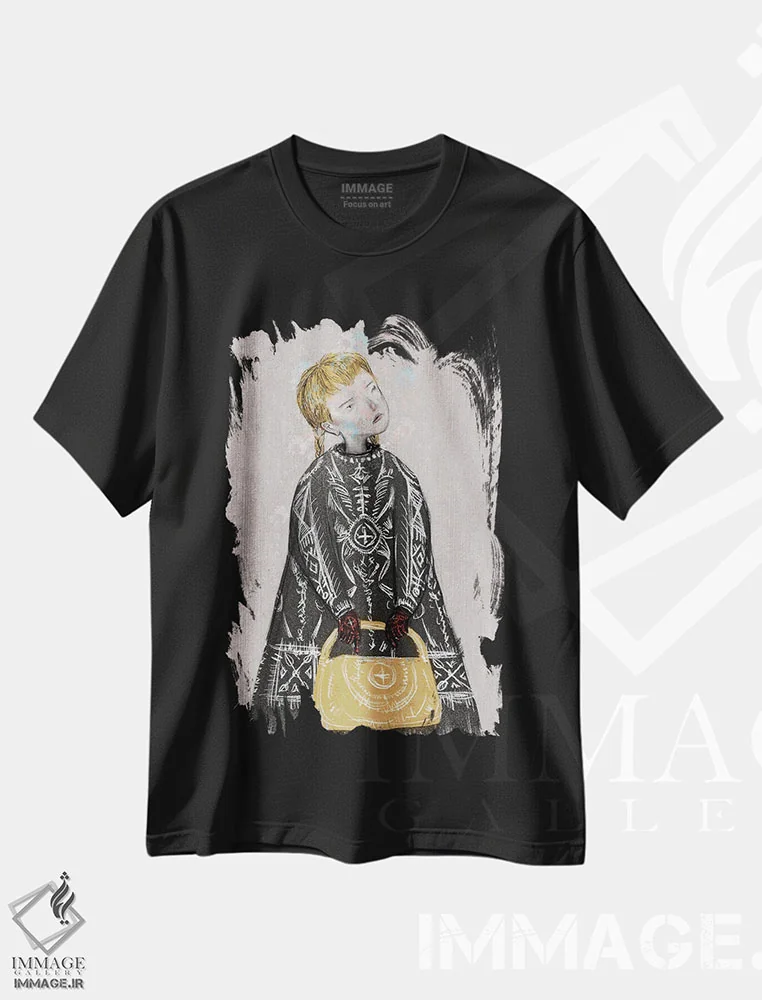 تیشرت مشکی طرح دار کت سنگین شرابی، دکوراسیون جایگزین اثر هیرویوشی کوراوا | فروشگاه ایماژ