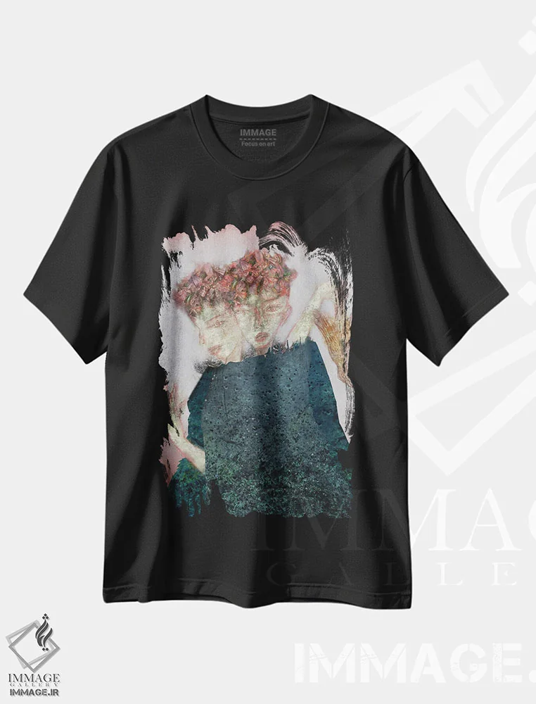 تیشرت مشکی طرح دار دو چهره نیلی، دکوراسیون جایگزین اثر هیرویوشی کوراوا | فروشگاه ایماژ