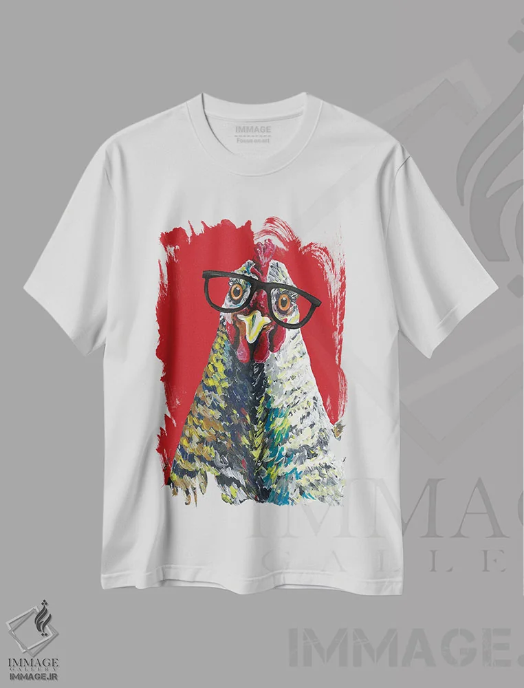تیشرت سفید طرح دار خروس رالف، دکور معاصر اثر هیپی هاوند استودیوز | فروشگاه ایماژ