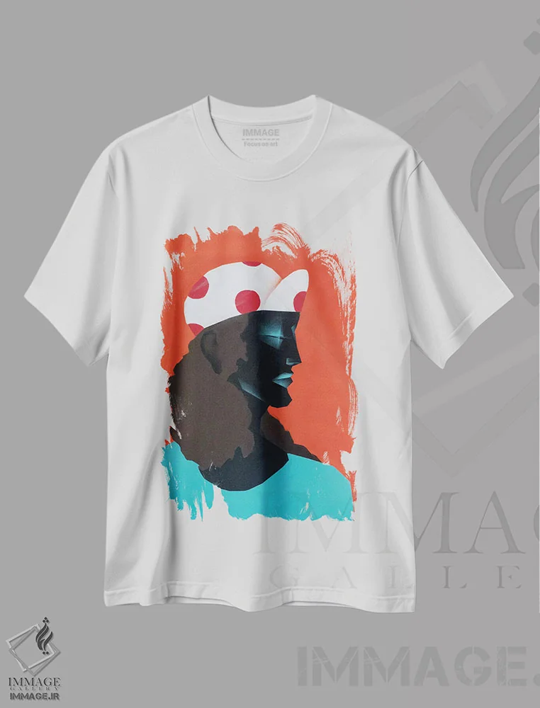 تیشرت سفید طرح دار بعدازظهر نارنجی، هنر آمریکایی آفریقایی تبار اثر وی کالونتو | فروشگاه ایماژ