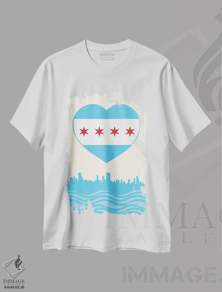 تیشرت سفید طرح دار قلب با طرح پرچم شیکاگو، هنر دیجیتال اثر پرینت های بنتون پارک | فروشگاه ایماژ تیشرت طرح دار قلب با طرح پرچم شیکاگو اثر پرینت های بنتون پارک