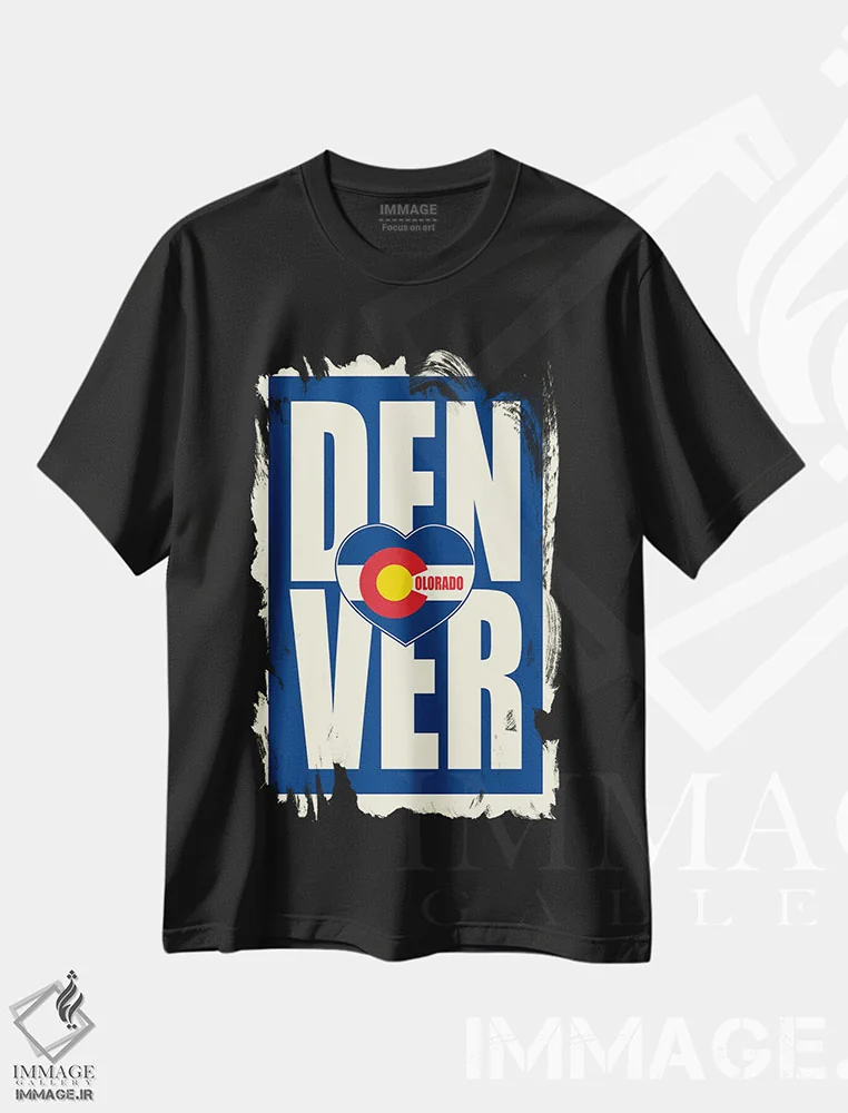 تیشرت مشکی طرح دار قلب تایپوگرافی دنور، هنر دیجیتال اثر پرینت های بنتون پارک | فروشگاه ایماژ تیشرت طرح دار قلب تایپوگرافی دنور اثر پرینت های بنتون پارک