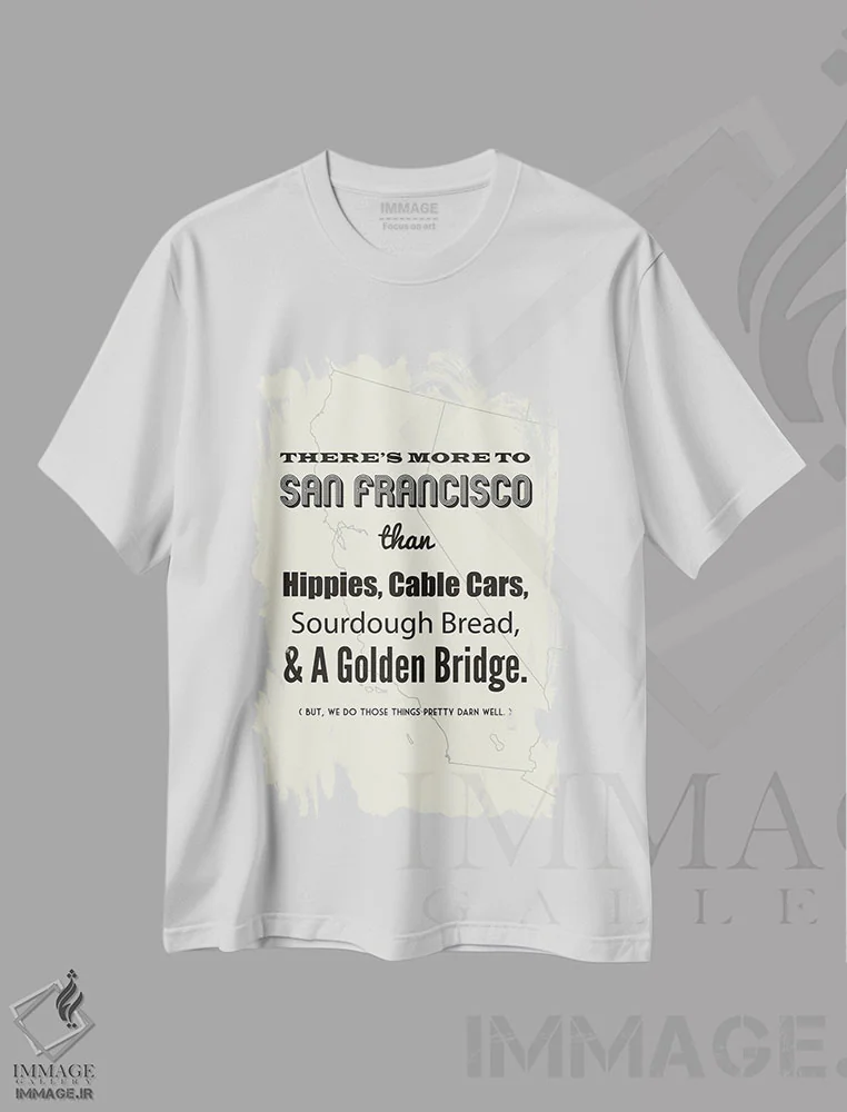 تیشرت سفید طرح دار سان فرانسیسکو فراتر از این هاست، هنر دیجیتال اثر پرینت های بنتون پارک | فروشگاه ایماژ تیشرت طرح دار سان فرانسیسکو فراتر از این هاست اثر پرینت های بنتون پارک