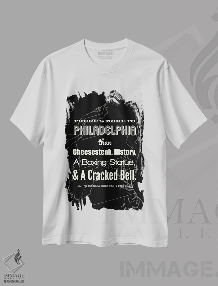 تیشرت سفید طرح دار فیلادلفیا فراتر از این هاست، هنر دیجیتال اثر پرینت های بنتون پارک | فروشگاه ایماژ تیشرت طرح دار فیلادلفیا فراتر از این هاست اثر پرینت های بنتون پارک