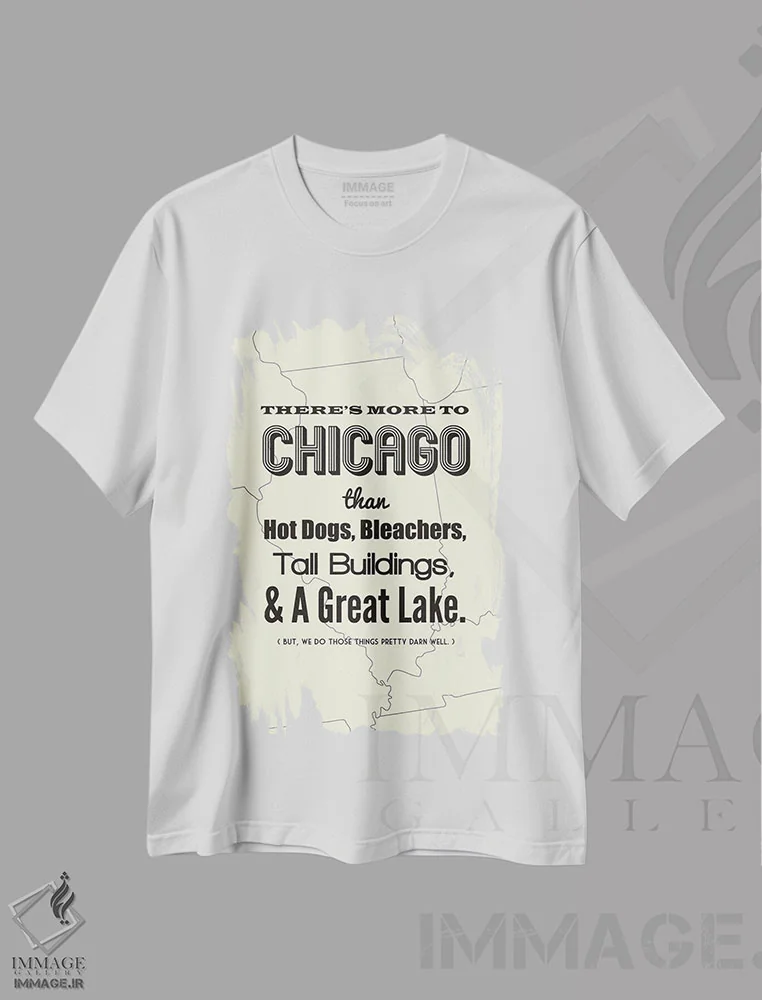 تیشرت سفید طرح دار شیکاگو فراتر از این هاست، هنر دیجیتال اثر پرینت های بنتون پارک | فروشگاه ایماژ تیشرت طرح دار شیکاگو فراتر از این هاست اثر پرینت های بنتون پارک