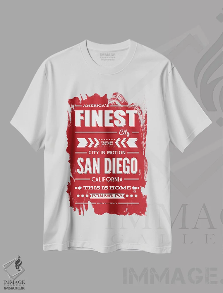 تیشرت سفید طرح دار تایپوگرافی سن دیگو، هنر دیجیتال اثر پرینت های بنتون پارک | فروشگاه ایماژ تیشرت طرح دار تایپوگرافی سن دیگو اثر پرینت های بنتون پارک