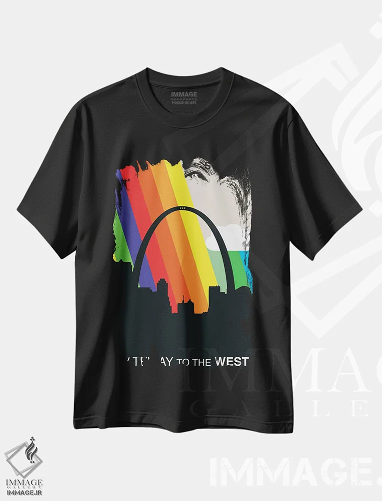 تیشرت مشکی طرح دار دروازهٔ غرب، هنر دیجیتال اثر پرینت های بنتون پارک | فروشگاه ایماژ تیشرت طرح دار دروازهٔ غرب اثر پرینت های بنتون پارک