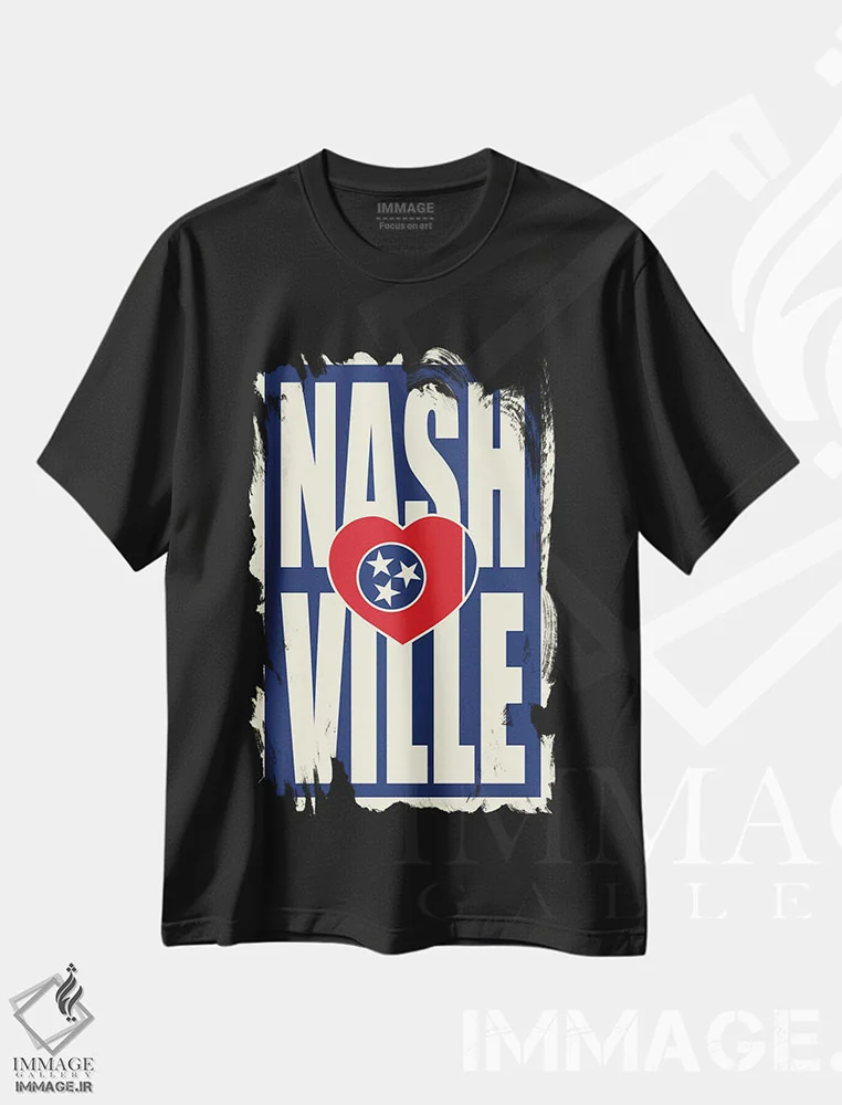 تیشرت مشکی طرح دار قلب تایپوگرافی نشویل، هنر دیجیتال اثر پرینت های بنتون پارک | فروشگاه ایماژ تیشرت طرح دار قلب تایپوگرافی نشویل اثر پرینت های بنتون پارک