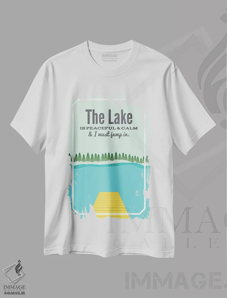 تیشرت سفید طرح دار دریاچه آرام و ساکت است، دکور کلبه و لژ اثر پرینت های بنتون پارک | فروشگاه ایماژ تیشرت طرح دار دریاچه آرام و ساکت است اثر پرینت های بنتون پارک