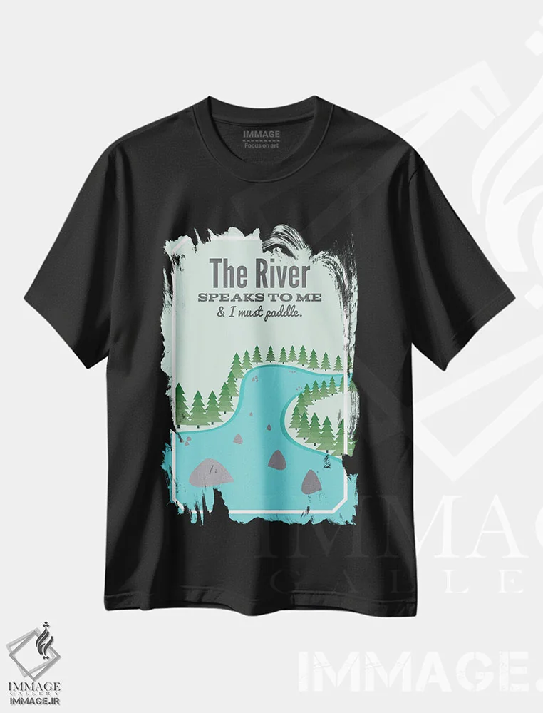 تیشرت مشکی طرح دار رودخانه با من سخن می گوید، هنر دیجیتال اثر پرینت های بنتون پارک | فروشگاه ایماژ تیشرت طرح دار رودخانه با من سخن می گوید اثر پرینت های بنتون پارک