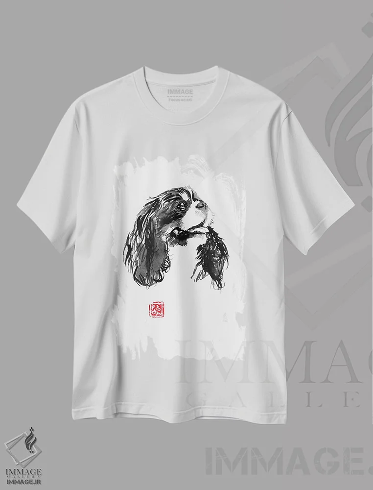 تیشرت سفید طرح دار – تیشرت حیوانات ,کاوالیر کینگ چارلز اثر پِشان فروشگاه ایماژ