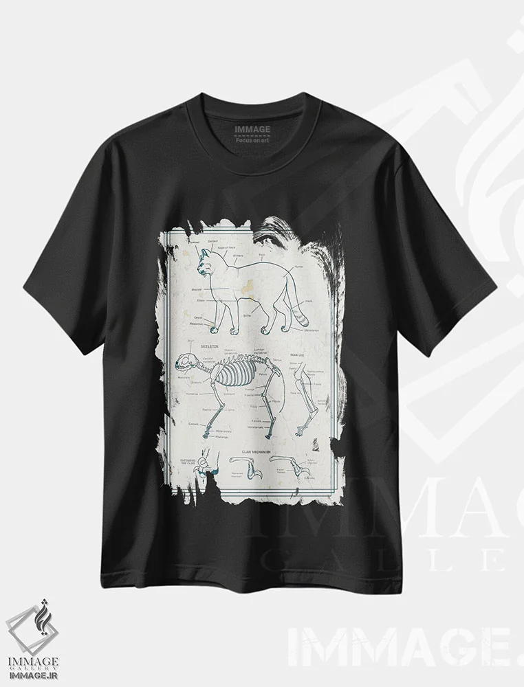 تیشرت مشکی طرح دار آناتومی گربه، دکوراسیون جایگزین اثر چارت اسمارت دکور | فروشگاه ایماژ تیشرت طرح دار آناتومی گربه اثر چارت اسمارت دکور