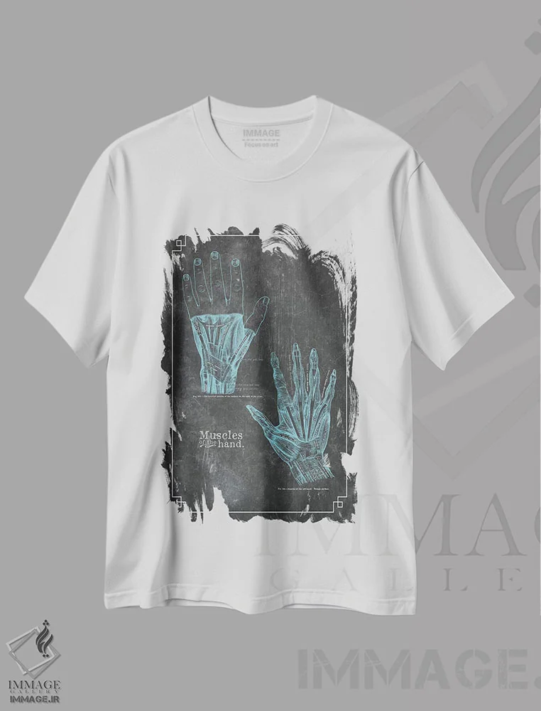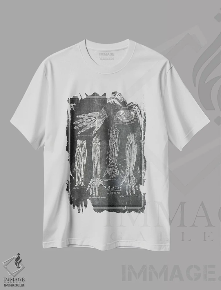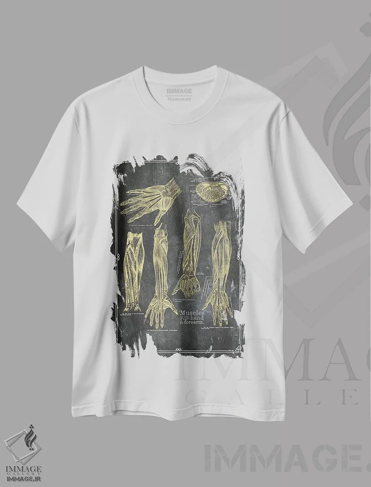 تیشرت سفید طرح دار عضلات ساعد و دست، تزئینی اثر چارت اسمارت دکور | فروشگاه ایماژ تیشرت طرح دار عضلات ساعد و دست اثر چارت اسمارت دکور