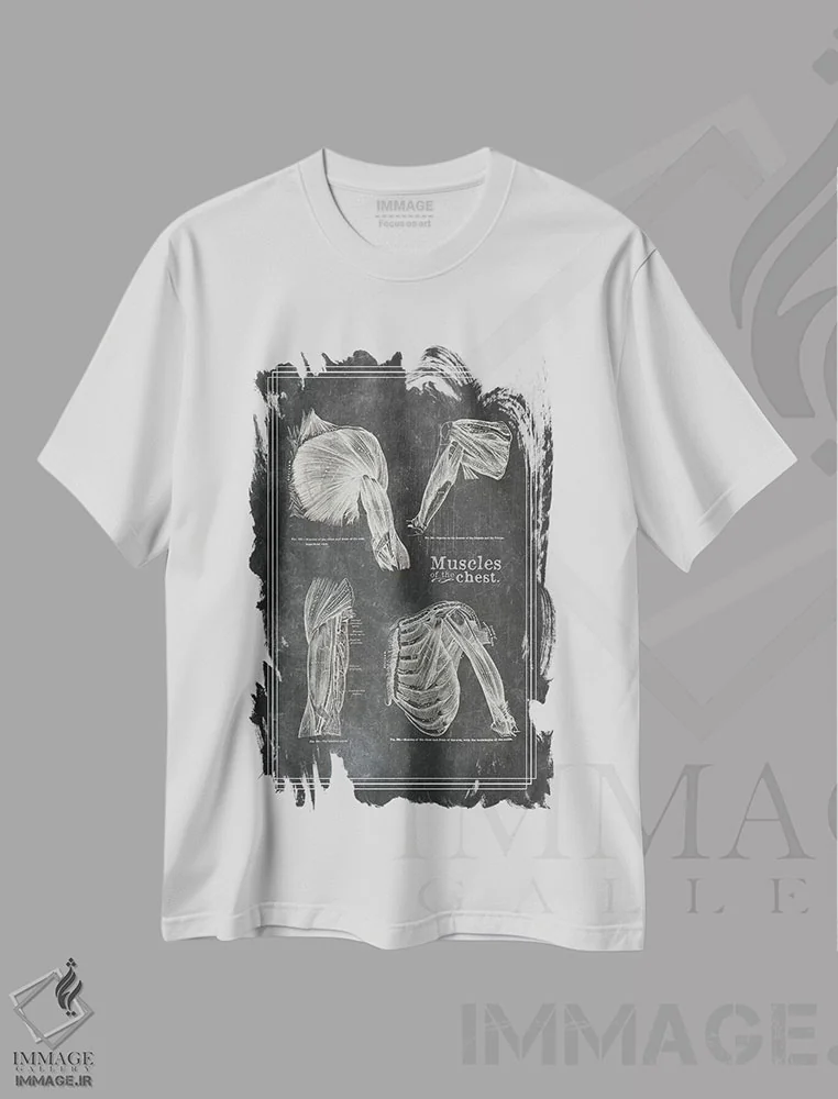 تیشرت سفید طرح دار عضلات کمر و گردن ۲، تزئینی اثر چارت اسمارت دکور | فروشگاه ایماژ تیشرت طرح دار عضلات کمر و گردن اثر چارت اسمارت دکور
