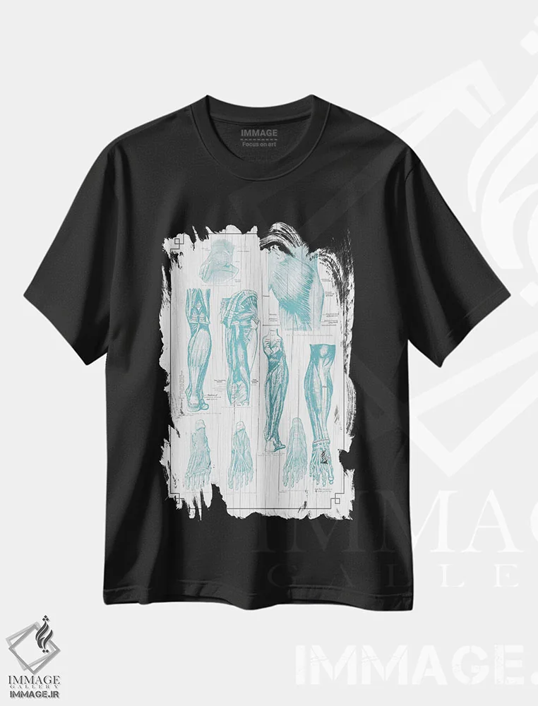 تیشرت مشکی طرح دار آناتومی باسن، پا و کف پا، تزئینی اثر چارت اسمارت دکور | فروشگاه ایماژ تیشرت طرح دار آناتومی باسن، پا و کف پا اثر چارت اسمارت دکور
