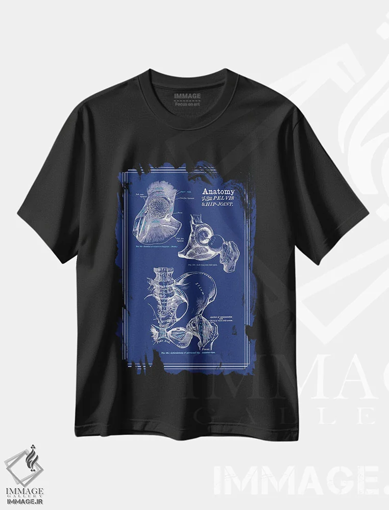 تیشرت مشکی طرح دار آناتومی لگن و مفصل ران، تزئینی اثر چارت اسمارت دکور | فروشگاه ایماژ تیشرت طرح دار آناتومی لگن و مفصل ران اثر چارت اسمارت دکور