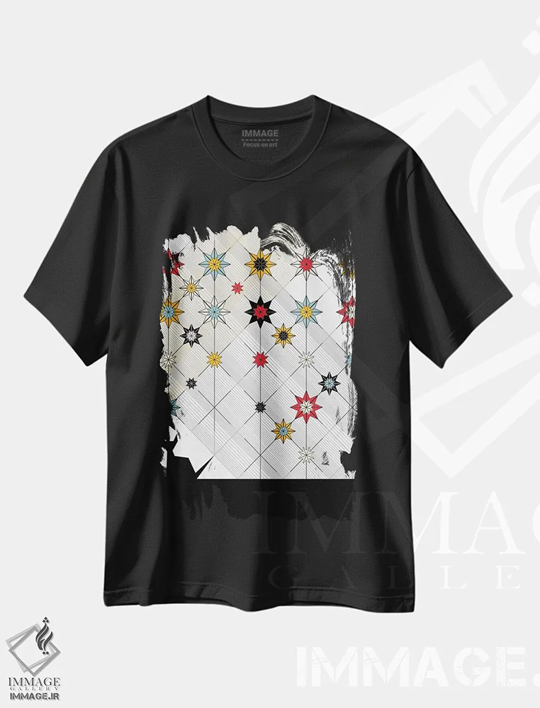 تیشرت مشکی طرح دار هندسی ۳، آبستره اثر چایا شرادر | فروشگاه ایماژ تیشرت طرح دار هندسی اثر چایا شرادر