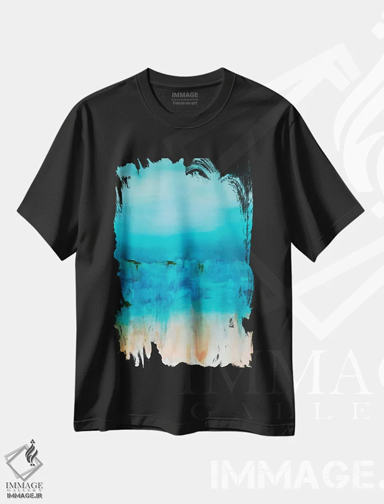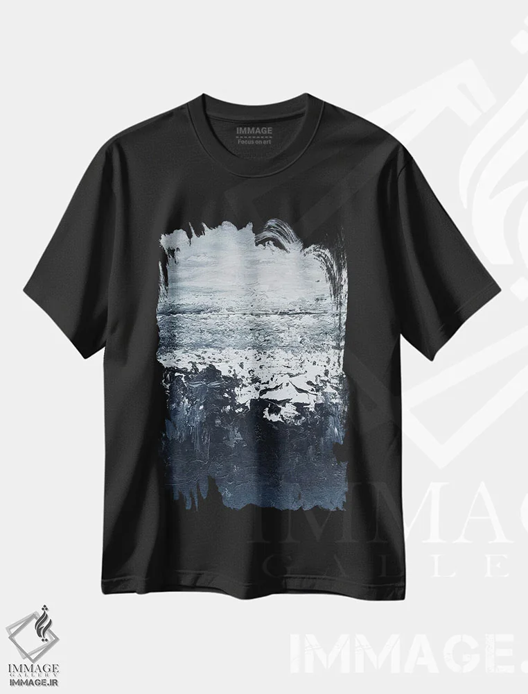 تیشرت مشکی طرح دار تب آبی ۱ اثر کا آر موئر | فروشگاه ایماژ