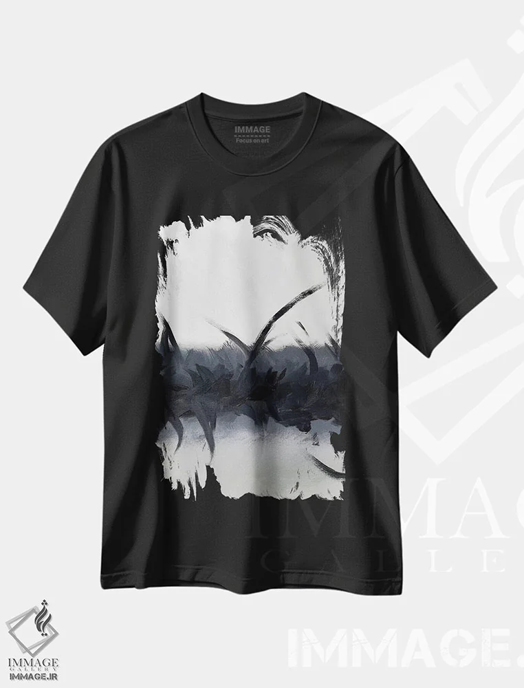 تیشرت مشکی طرح دار شادی در سیاهی اثر کا آر موئر | فروشگاه ایماژ