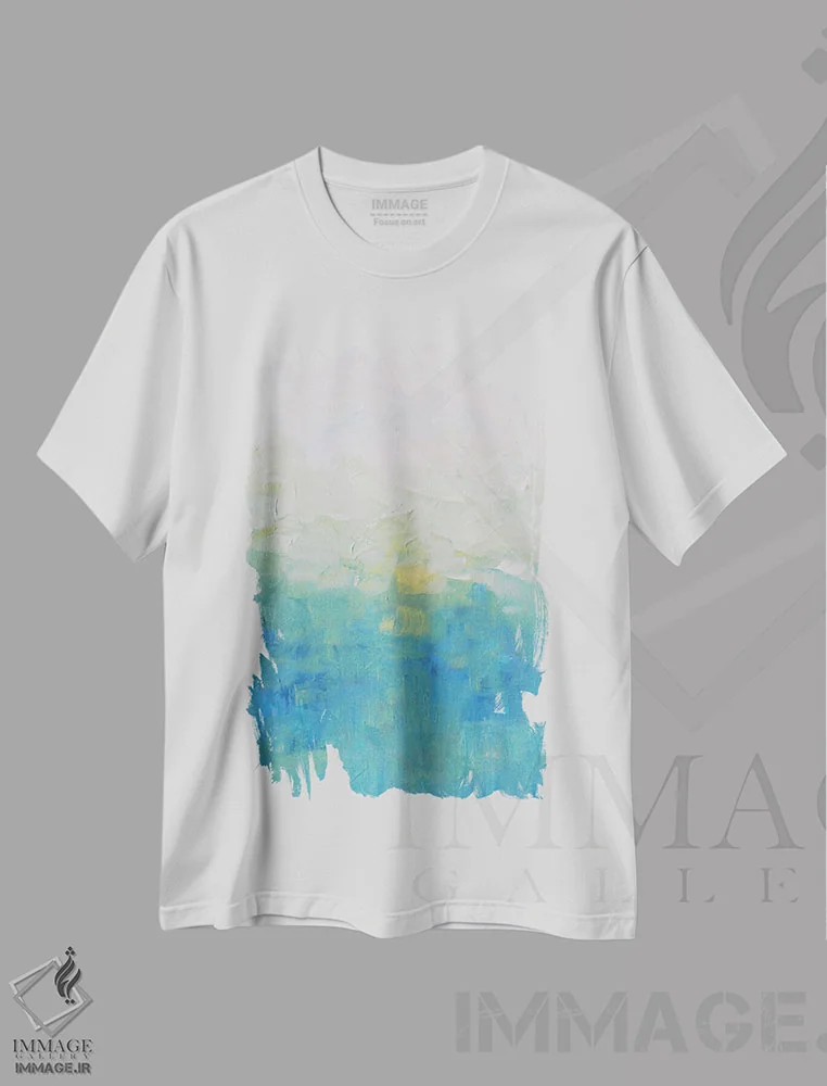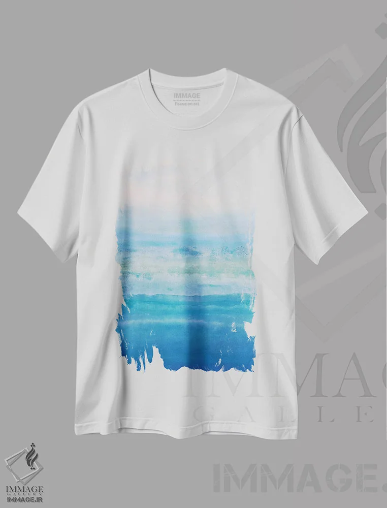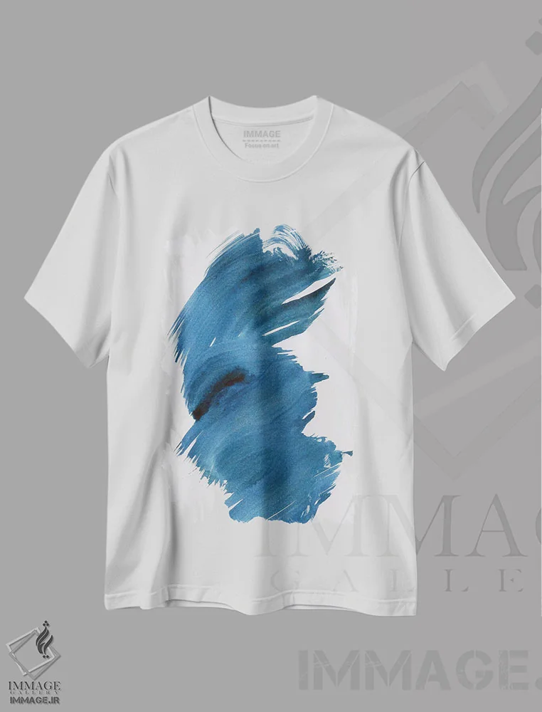 تیشرت سفید طرح دار تب آبی ۲ اثر کا آر موئر | فروشگاه ایماژ