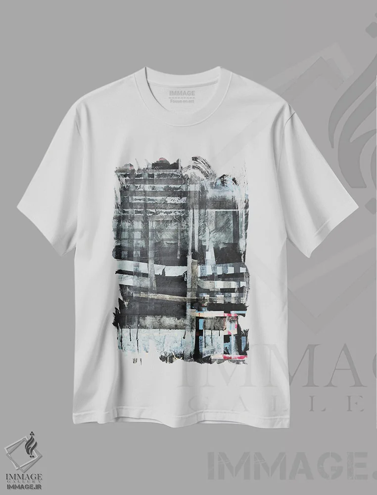 تیشرت سفید طرح دار رستروس ۱، آبستره اثر کاترین شوایندن هامر | فروشگاه ایماژ تیشرت طرح دار رستروس اثر کاترین شوایندن هامر