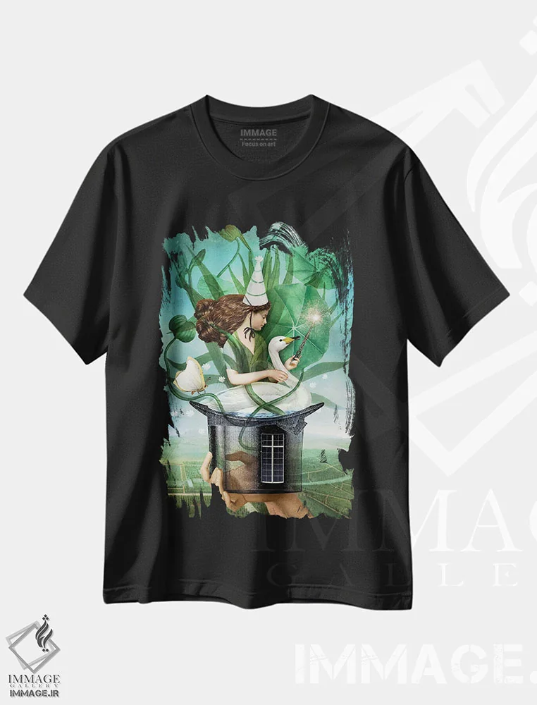 تیشرت مشکی طرح دار تخیّل، هنر فاخر معاصر اثر کاترین ولز-استاین | فروشگاه ایماژ تیشرت طرح دار تخیّل اثر کاترین ولز-استاین