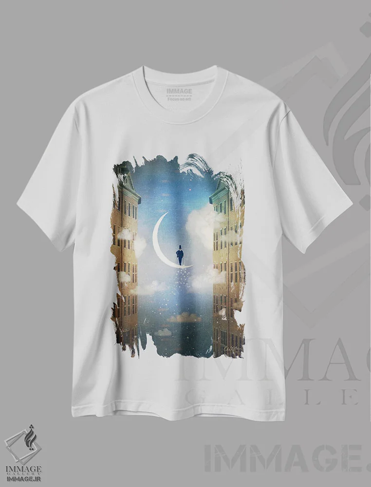 تیشرت سفید طرح دار رقص مهتاب، هنر فاخر معاصر اثر کاترین ولز-استاین | فروشگاه ایماژ تیشرت طرح دار رقص مهتاب اثر کاترین ولز-استاین