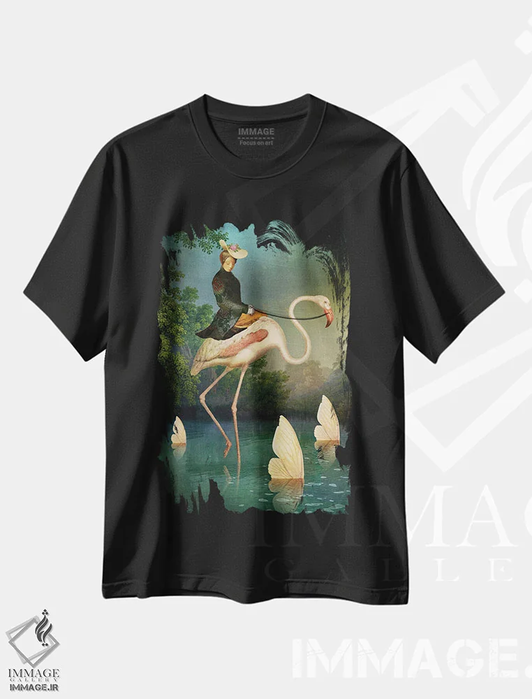 تیشرت سفید طرح دار فلامینگو، هنر فاخر معاصر اثر کاترین ولز-استاین | فروشگاه ایماژ تیشرت طرح دار فلامینگو اثر کاترین ولز-استاین