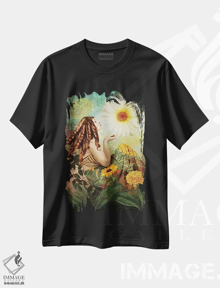 تیشرت مشکی طرح دار شگفتی، هنر فاخر معاصر اثر کاترین ولز-استاین | فروشگاه ایماژ تیشرت طرح دار شگفتی اثر کاترین ولز-استاین