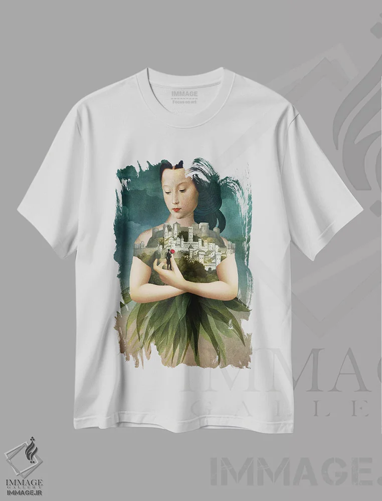 تیشرت سفید طرح دار شوالیه گل سرخ، هنر فاخر معاصر اثر کاترین ولز-استاین | فروشگاه ایماژ تیشرت طرح دار شوالیه گل سرخ اثر کاترین ولز-استاین