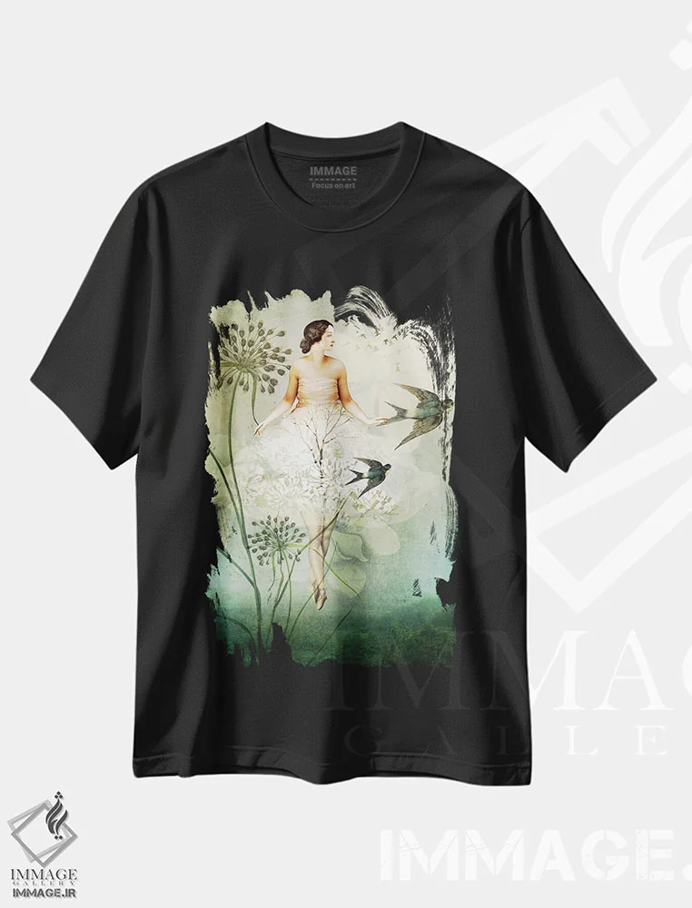 تیشرت مشکی طرح دار پرواز صبحگاهی، هنر فاخر معاصر اثر کاترین ولز-استاین | فروشگاه ایماژ تیشرت طرح دار پرواز صبحگاهی اثر کاترین ولز-استاین