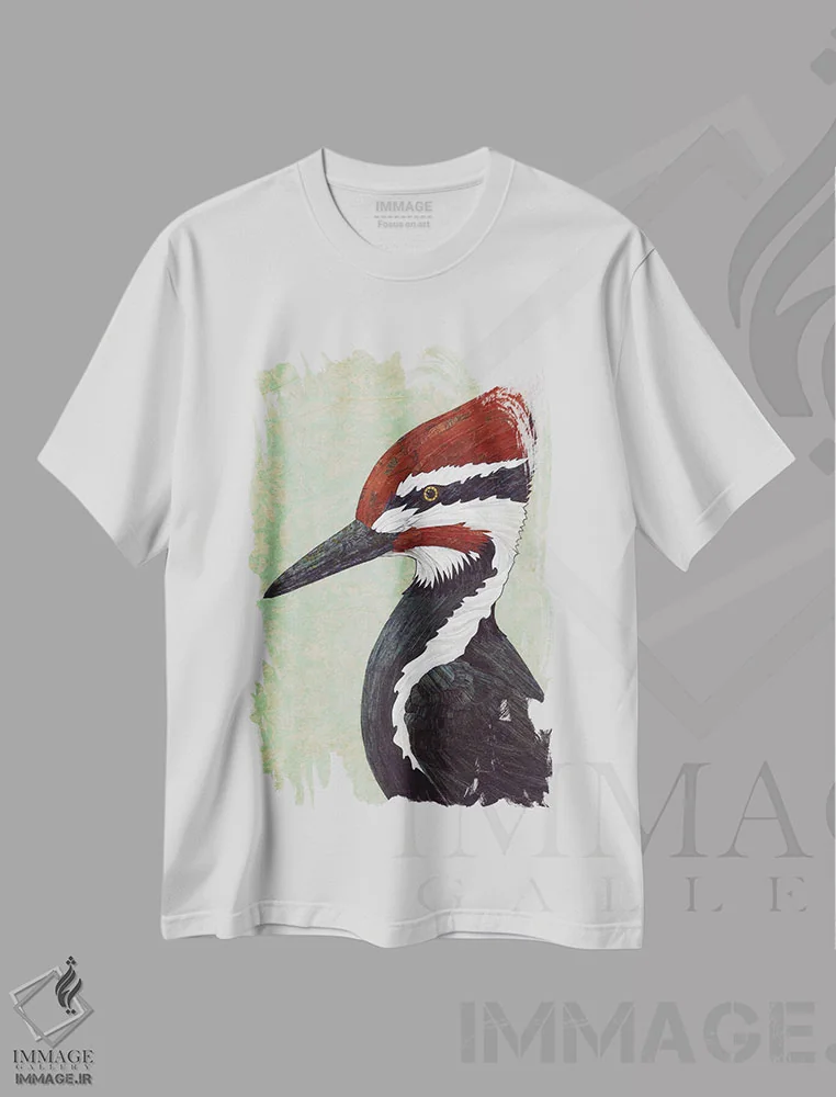 تیشرت سفید طرح دار پرنده بهاری، دکور معاصر اثر کارن سیکیه | فروشگاه ایماژ
