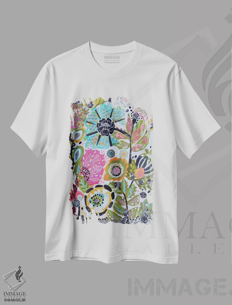 تیشرت سفید طرح دار باغ مخفی گُلی ۴، دکور معاصر اثر کارن فیلدز | فروشگاه ایماژ