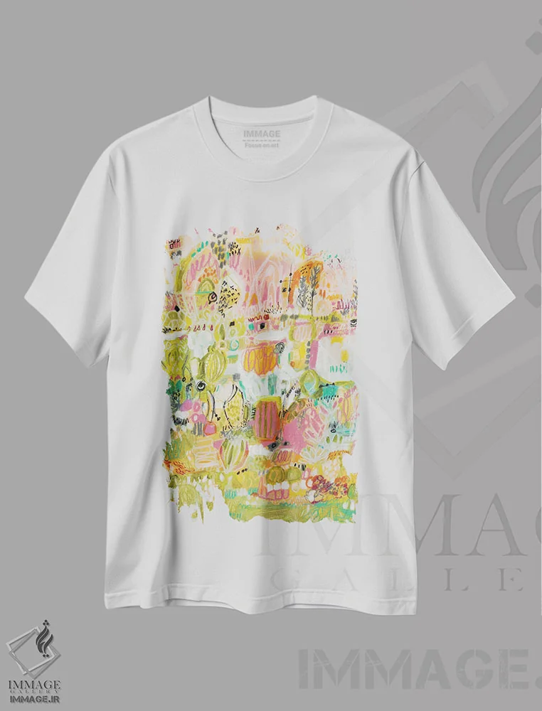 تیشرت سفید طرح دار باغ بوهو ۱، آبستره اثر کارن فیلدز | فروشگاه ایماژ