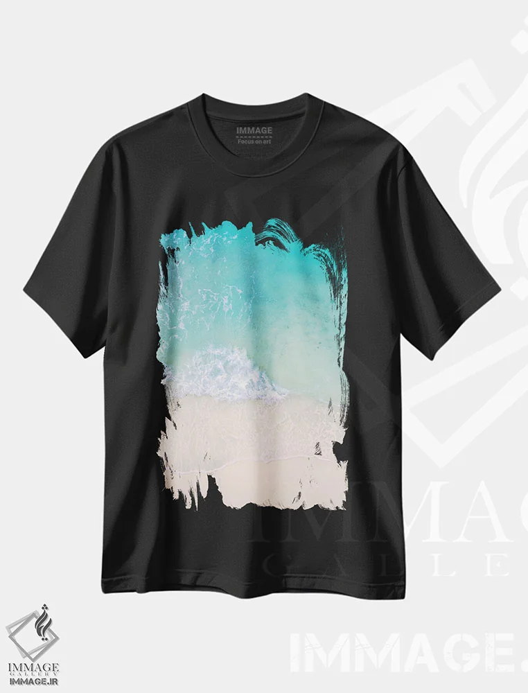 تیشرت مشکی طرح دار امواج ساحلی از بالا، سواحل از نمای بالا اثر کارن منداو | فروشگاه ایماژ تیشرت طرح دار امواج ساحلی از بالا اثر کارن منداو