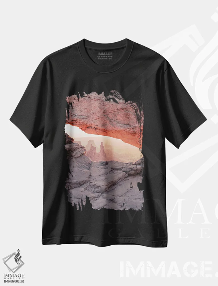 تیشرت مشکی طرح دار طاق های سنگی یوتا، مدیوم اثر کارن منداو | فروشگاه ایماژ تیشرت طرح دار طاق های سنگی یوتا اثر کارن منداو